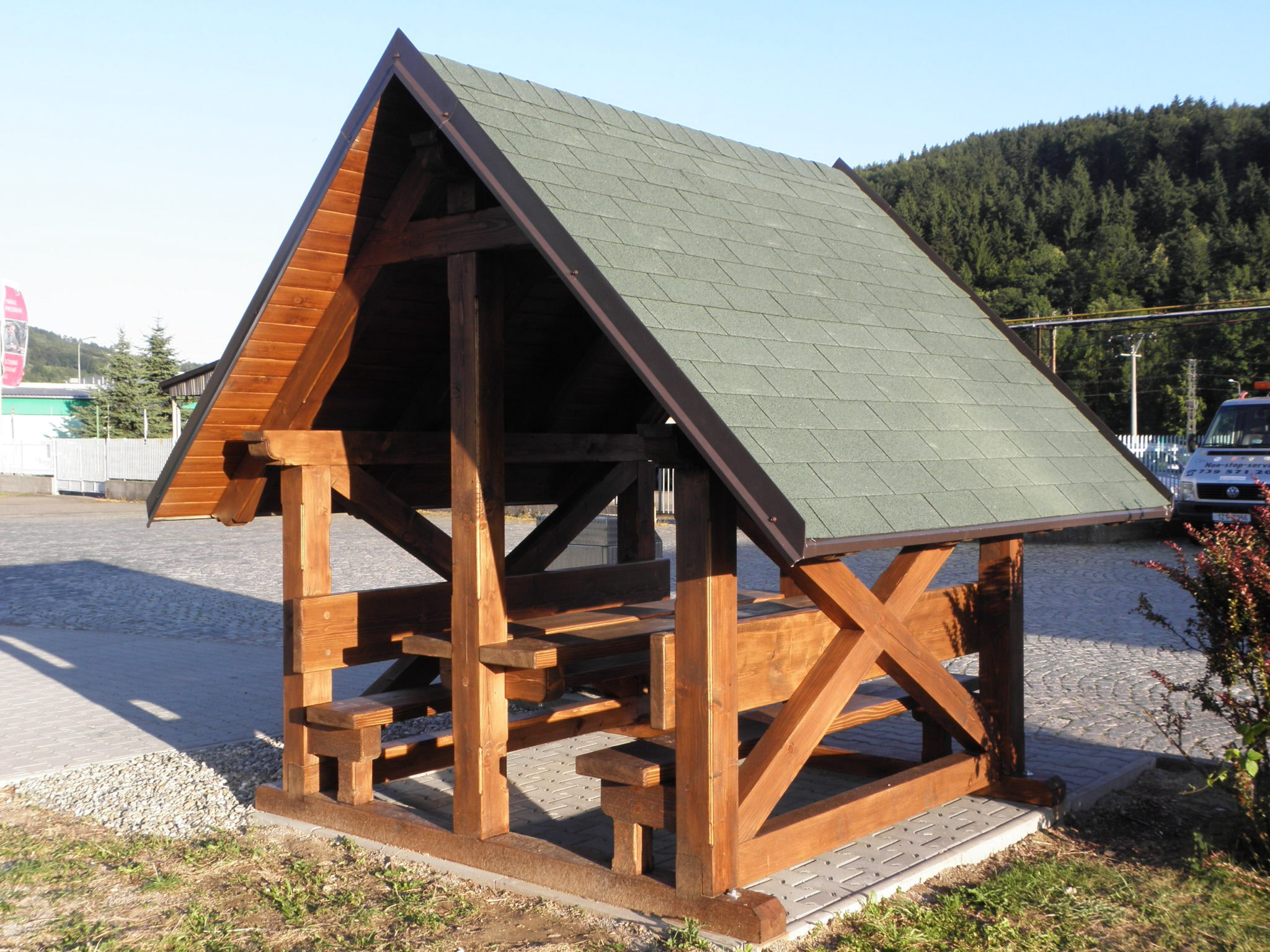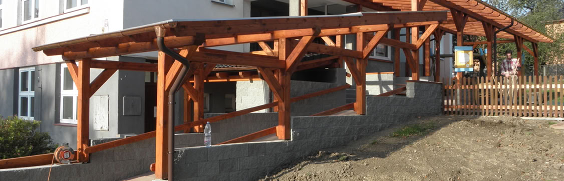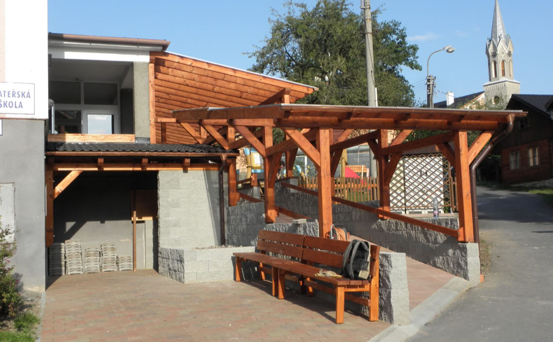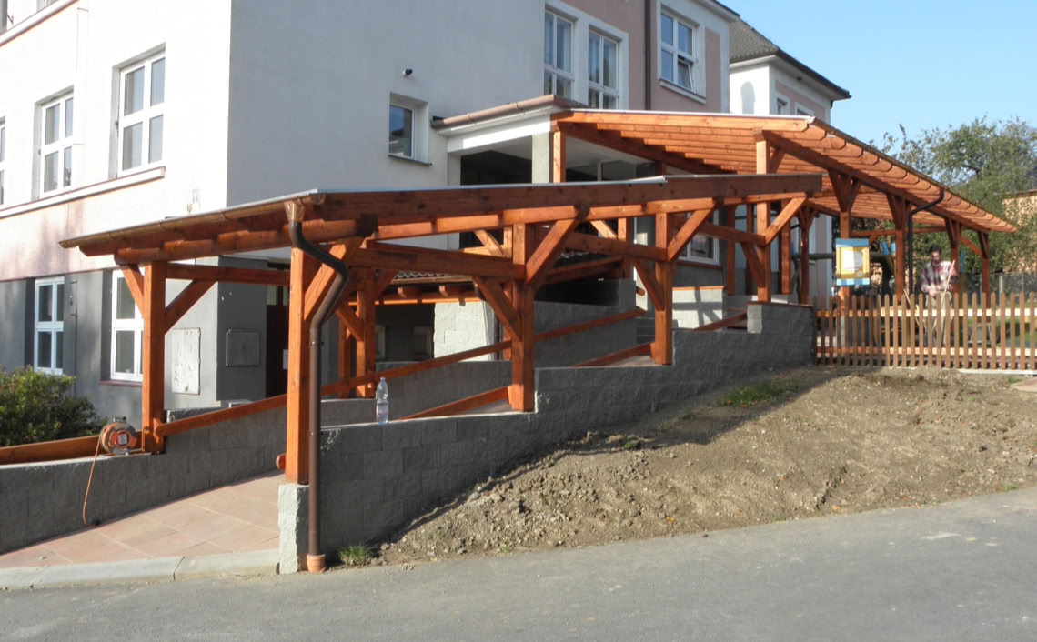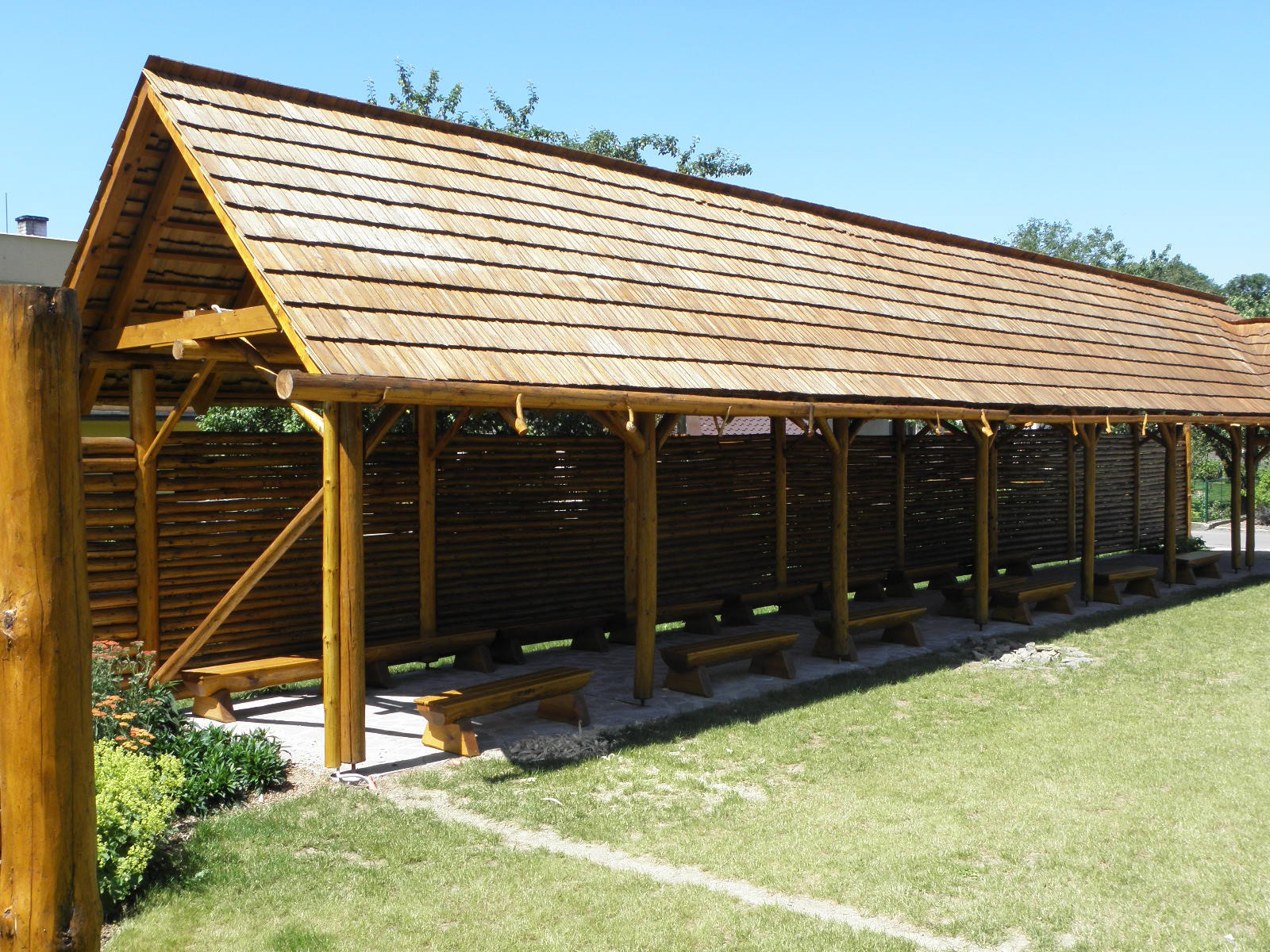 Vyrábíme a montujeme dřevěné přístřešky na míru – od rodinných altánů a garážových stání až po zastřešení vstupů škol, teras restaurací nebo hotelových posezení.