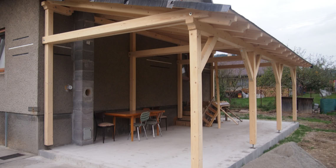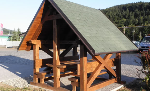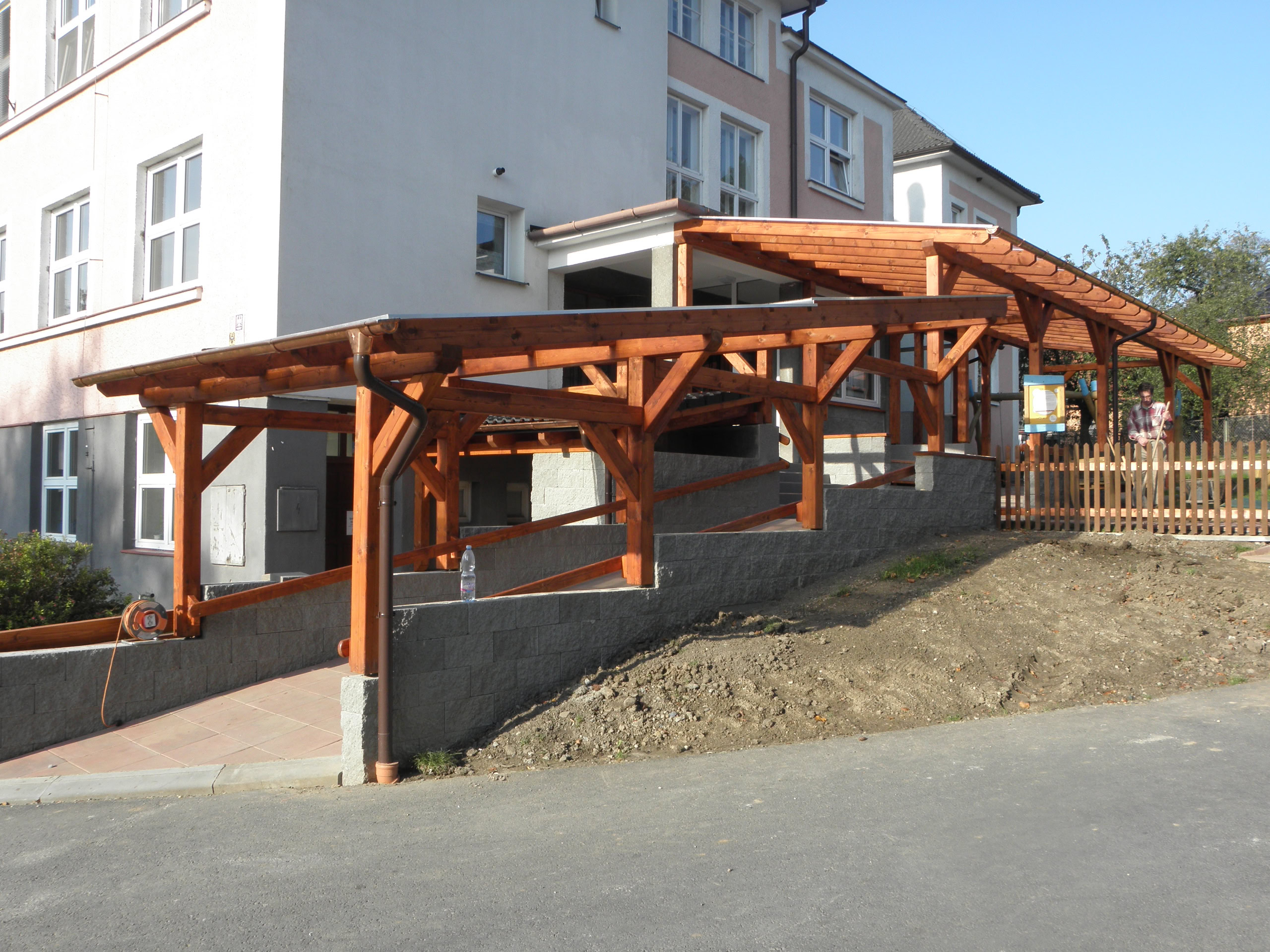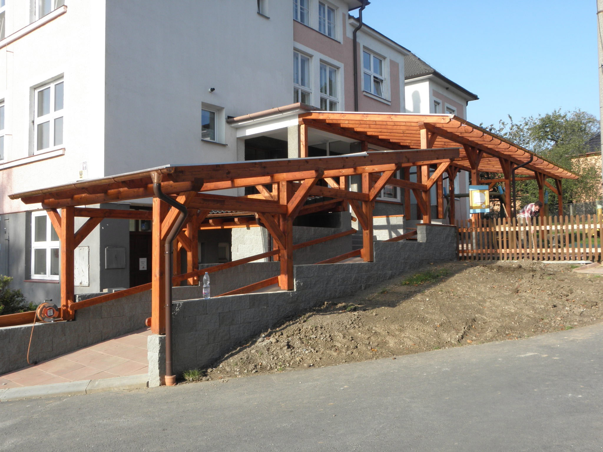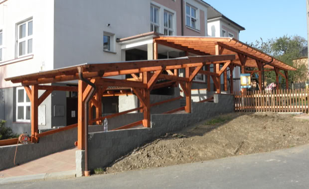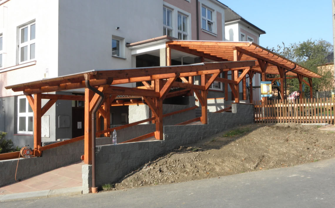 Vyrábíme a montujeme dřevěné přístřešky na míru – od rodinných altánů a garážových stání až po zastřešení vstupů škol, teras restaurací nebo hotelových posezení.