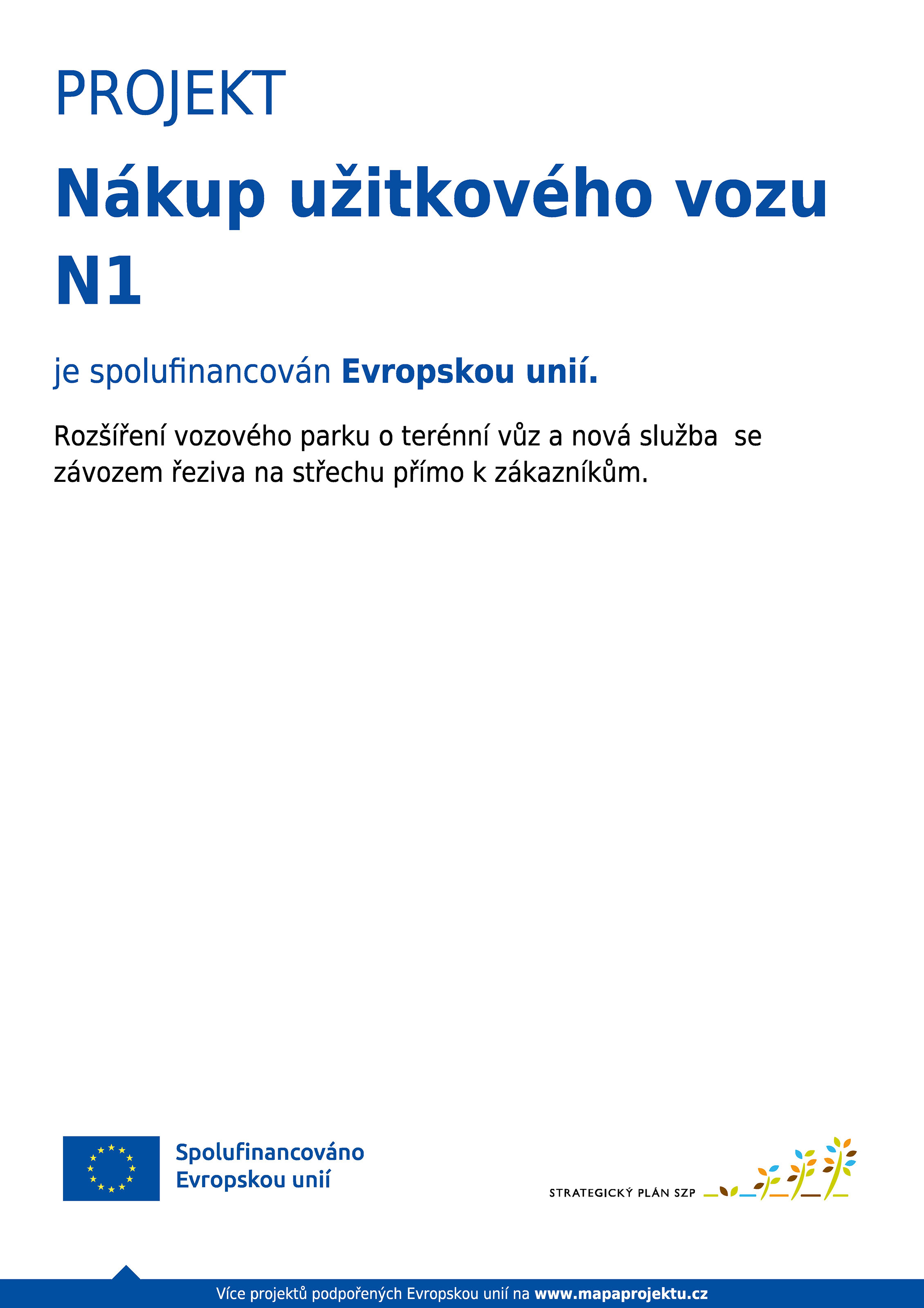 Nově nabízíme závoz řeziva na střechu přímo k zákazníkům díky nového terénního vozu, který je spolufinancován z projektu Evropské unie.